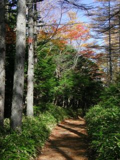 分岐点に差しかかる。ここを右へ曲がると本沢温泉への