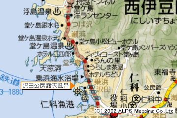 海岸方向へ。沢田公園の駐車場へ着くと、そこは温泉の