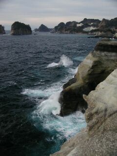 柵の真下では、波がだっぱんだっぱん砕けてます。
