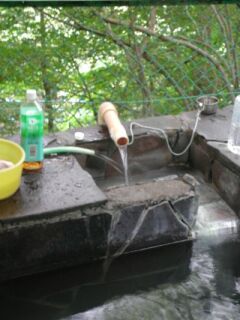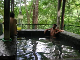 緑に囲まれた、3畳程の湯船にはほのかな硫黄の臭いが漂っています。