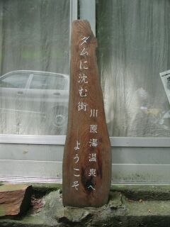 国道からの入口や街の中には、開き直ったように”ダムに沈む”